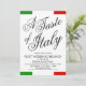 Celebre o seu recente matrimônio lançando um brinde ou janto de evento de provando ao estilo italiano. Permitam que todos se socializem enquanto provando os melhores e mais populares pratos da cozinha italiana. Este convite inclui as bandeiras italianas que se enquadram no lado e as palavras "gosto de Itália" em relação ao centro. Todos os elementos do convite são desbloqueados e personalizáveis Incluindo a frase "Um gosto da Itália". Use a função personalizada para acessar esses recursos. Divirta-se desenhando e fazer-o seu.