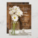 Convide os convidados a continuar a celebração na manhã após a cerimônia de casamento com o convite informal, porém elegante, Mason Jar e White Daisies Country Post Wedding Brunch. Este encantador convite para o café da manhã ou almoço pós-casamento com tema rústico chic apresenta uma fotografia floral digitalmente aprimorada de um jarro de vidro cheio de flores de margaridas brancas e um fundo de madeira de celeiro marrom desgastado. Inspiração perfeita para o seu evento de celebração de estilo farm ou festa de celeiro.