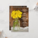 Mantenha a celebração animada na manhã após a cerimônia de casamento com o encantador Convite de Café da Manhã Pós-Casamento Country com Pote de Mason e Margaridas Amarelas. Este convite casual, porém sofisticado, para um Desjejum ou Almoço Pós-Casamento com estilo rústico chic personalizado apresenta uma fotografia floral encantadora de um pote de conserva de vidro repleto de flores de margaridas amarelas e um fundo de madeira de celeiro marrom desgastado. Inspiração ou ideia perfeita para uma festa informal com tema de fazenda ou celeiro. Disponível como convite impresso para envio postal ou como download digital para compartilhamento fácil online.