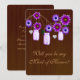 O dia perfeito de toda noiva inclui suas amigas. Quem você confia para dar um discurso e realizar tarefas como ajudá-la a escolher os vestidos das damas de honra para que o plano do seu casamento ocorra sem problemas? Seja sua irmã responsável, prima, sobrinha ou melhor amiga, este convite "Você será minha Dama de Honra?" é uma maneira divertida de perguntar. Personalize o cartão alterando o texto nos campos fornecidos. Você pode alterar o estilo, tamanho e cor da fonte, tipo e estilo de papel.
