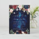 Casamento ao ar livre. Com céu azul meia-noite, flores boho em aquarela borgonha e rosas e peônias desbotadas com potes de pedreiro rústicos. Acentuado com convite de casamento com escrita à mão em dourado falso elegante e moderno (com filtro prateado). Cor de fundo DIY.