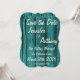 Este design em forma de suporte de madeira azul turquesa brilhante tem espaço para seus nomes delineados, data, localização e texto de nota. Com uma fonte emocionante e divertida e um design rústico único, este cartão de save the date certamente agradará e atrairá seu convidado! O design de tábuas de madeira rústica é apresentado na frente e no verso, no entanto, este cartão é completamente personalizável.