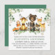 Watercolor Woodland Animal Chá de fraldas Invitation. Os bebês incluem Urso, Veado, Moose, Raccoon, Coelho Coelho, Raposa e Coruja em folhas de eucalipto e verde florestal.