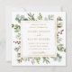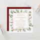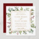 Este convite quadrado de Natal mostra a cor d'água do eucalipto, folhas verdes, bagas vermelhas, galhos de pínus, e uma falso estrutura quadrada de ouro com fundo vermelho no verso. Para personalização mais avançada deste design, clique no link "Personalizar mais". Itens correspondentes também estão disponíveis.