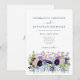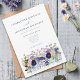 Convite de casamento único pintado à mão com aquarela de flores silvestres e folhagens em tons de azul-marinho, azul-pó, azul-de-mil-flores, azul-marinho, roxo, rosa, vermelho, amarelo, burgundy, magenta e verde. Personalize as iniciais do monograma da noiva e do noivo no verso do convite. Ideal para um save the date de casamento único para um casamento de primavera ou verão. Tipografia moderna elegante em azul-marinho complementa a arte boho caprichosa e linda que inclui centáureas, papoulas, cosmos, miosótis, margaridas, botão-billy e folhagens delicadas. Convites chic boêmios de save the date perfeitos para um casamento de primavera no prado, jardim de verão. Arte original da artista Catherine Sweetman