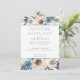 O elegante design de casamento padrão pastel macio apresenta um sofisticado rosa de cor d'água pintado à mão e impressão de buquê de flor hydrangea em tons de enfumaçado de azul de ardósia, esbranquiçado, amarelo-marigold mutado, e rosa-pincel embelezado por sotaques verdes de louros botânicos. Este lindo layout apresenta seus detalhes em um roteiro clássico moderno e limpo. Para outras cores ou produtos correspondentes, visite a loja justFharryn Zazzle ou entre em contato com o designer, c/o Fharryn@yahoo.com Todos os direitos reservados. #bohochic #zazzlemade