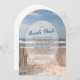 apresentando uma bela cena costeira com céu azul, ondas oceânicas e uma cerca de madeira que leva a uma praia arenosa.