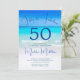 Uma cena de praia entusiasmante é o fundo deste convite de aniversário para a Festa de Praia dos Dezesseis. Uma imagem está no reverso do convite. O azul oceânico e o céu são as principais cores. Todas as informações e a imagem são facilmente substituídas para seu próprio convite personalizado.