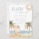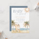 Traga uma vibração costeira relaxada para o seu chá de fraldas com este convite de duas faces da cor d'água "Bebê no Conselho" da Redwood & Vine Design Co. A frente mostra trabalho de arte de palmeiras pintadas à mão, ondas oceânicas, margem arenosa, sol ouro e pranchas, enquanto a parte de trás apresenta um fundo azul empoeirado com ilustrações tropicais, detalhes do registro de presentes e um código QR digitalizável Registros online. Ideal para uma celebração tropical, praia ou inspirada no surf, esse convite emparelha beleza natural com detalhes práticos para uma apresentação completa e elegante.