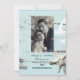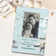 convites de aniversário de casamento de praia de conchas marinhas azuis. Convites de aniversário de casamento rústicos tropicais com foto.