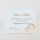 Salve a data com lindas conchas marinhas em uma costa arenosa para complementar nosso convite de casamento na praia de conchas. Personalize o texto como preferir.