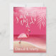 Este lindo save the date apresenta uma praia sonhadora de cor rosa, folhas de palmeira e flamingo rosa. Vários produtos compatíveis estão disponíveis. PARA VER A COLEÇÃO COMPLETA, VISITE: glamprettyweddings.com. Estes anúncios de save the date estão disponíveis em 5 cores: aqua, jade, rosa, coral e dourado. Use o botão "Personalizar" para personalizar com seu próprio texto. Para perguntas ou pedidos personalizados, envie um e-mail para: cheryl@glamprettyweddings.com/contact. O design original "Flamingo Beach" é de Cheryl Daniels © 2014.