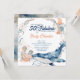 Desfrute de uma festa temática de praia de 50 & Fabuloso em casa ou leve sua festa para a estrada para uma viagem ao oceano. Um design de script moderno e divertido com belos tons de azul e verde-azulado. Recursos belos baleias aquarela, corais e areia. Feliz Aniversário! Este item faz parte de uma coleção.