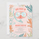 Vamos entra e se diverte muito! Faça um salto na sua doce festa de aniversário 16 com nossos convites para ilustração da vida do mar de mergulho em Scuba de Verão, em cor-de-água, em cor-de-rosa pastel. Perfeito para o aventureiro submarino em você! Apresentando uma máscara de ronco cheia de peixes, tartarugas e animais de vida marinha bonitos, com coral laranja e algas azuis. Adicione sua foto atrás. Festa perfeita de Verão para qualquer festa de aniversário etária!