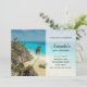 Convite de festa de aniversário com uma bela foto apresentando Tulum, México. Águas turquesa em uma costa arenosa. Palmeiras sopradas pelo vento balançando na brisa perto de um penhasco irregular. Suave e relaxante.