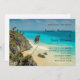 Convite de casamento com uma bela foto com Túlio, México. Águas turquesas em uma costa arenosa. O vento varreu palmeiras soprando na brisa perto de um penhasco rugoso. Calma e relaxante.