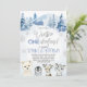 Convite Prata Azul Ártico Inverno Onederland Aniversário