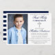 Azul Elegante moderno e Silver Primeiro Convite à Comunhão com Cruz e Foto. Bandas brancas e azuis nas costas.
