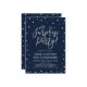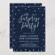 Celebre seu dia especial com este modelo de convite de festa moderno e elegante. Este design apresenta confetes prateados brilhantes com um fundo azul-marinho.