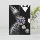 Um casal de arte suja vestindo roupa de gravata preta - ela está em um vestido de leopardo prateado e ele está em um smoking preto. A peça central é um chip de casino que contém texto personalizado e dados desfocados. Quer você se case em Vegas ou fique em sua cidade natal e jogue um evento temático no casino, este convite versátil e moderno é perfeito para qualquer ocasião especial - festas de aposentadoria, aniversários do marco, festas de coquetel e janto, jantas de ensaio, recepções de casamento, aniversários, eventos semiformais e formais ou reuniões de feriados festivos. Fácil de personalizar, use o botão "Personalizar" acima para adicionar seu próprio texto. Os adesivos de favor também estão disponíveis. Para perguntas ou solicitações especiais, entre em contato com o designer:cheryl@cheryldanielsart.com. Se este convite não for exatamente o que você está procurando, todos os meus produtos podem ser personalizados para acomodar suas necessidades específicas. Convite "Las Vegas Art Deco Birthday" de Cheryl Daniels © 2014.
