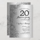 Convite de festa de aniversário de casamento de 20 anos Preto Floral Prata. Design moderno minimalista com desenhos de esboço botânico e fonte de letra script. Cartão de convite elegante perfeito para uma celebração estilosa. Pode ser personalizado para qualquer ano de casamento. Convites Zazzle impressos ou modelo digital para impressão instantânea.