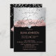Um dos bonitos convites para uma festa de menina. Folha de ouro de prata/cinza, preto e rosa-claro. Coração falsa de diamante no meio.