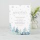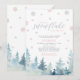 Celebre seu dia especial com este convite moderno de chá de bebê de inverno! Este design apresenta uma cena de inverno com flocos de neve prateados brilhantes, árvores em aquarela e tipografia elegante "Um pequeno floco de neve está a caminho" em prata e rosa coral. Perfeito para um tema de chá de bebê de País das Maravilhas de Inverno. Mais itens correspondentes disponíveis na minha loja BaraBomDesign