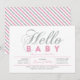 Celebre um dia especial para seu querido com este convite de chamada de bebê moderno! Este design apresenta uma tipografia simples, mas elegante "Olá Bebê" com textura brilhante rosa e prata.