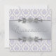 Convite de festa Quinceanera cinza prateado roxo damasco para festas de 15 ou 16 anos. Adicione seus detalhes na frente e no verso simplesmente escolhendo o botão laranja "Personalize!" para começar a adicionar os detalhes do seu evento, estilo de fonte, tamanho e cor da fonte e texto. Por favor, note que todos os desenhos de convite que você encontrará na Zazzle são gráficos impressos em papel liso sem joias, laços, relevos, rebaixos ou peças ou partes adicionais.