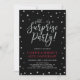 Celebre seu dia especial com este modelo de convite de festa moderno e elegante. Este design apresenta confetes prateados brilhantes com um tema de cores preto e rubi.