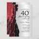 Convite de celebração de 40º aniversário surpresa prata e vermelho rubi. Design moderno elegante com fundo de geodo de mármore de aguarela, prata brilhante falsa e fonte de tipografia script. Cartão de convite elegante perfeito para uma festa de aniversário de casamento sofisticada. Convites Zazzle impressos ou modelo digital para impressão instantânea.
