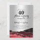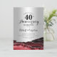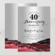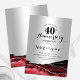 Convite de 40º aniversário prata e vermelho rubi. Design formal elegante com fundo de mármore ágata, prata brilhante falsa e fonte de tipografia script. Cartão de convite moderno perfeito para uma celebração de aniversário de casamento elegante. Convites Zazzle impressos ou modelo digital para impressão instantânea.