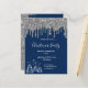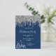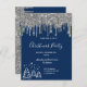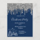 Fundo azul clássico, com falsa cintilação prateada e árvores brancas de Natal como decoração. Com o texto: Festa de Natal escrita com uma escrita de estilo moderna e moderna, escrita à mão. Personalize e adicione as informações de sua parte.
