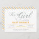 Celebre um dia especial para o seu amado com este chá de fraldas moderno! Este design apresenta uma tipografia simples, mas na moda, "É uma garota" com textura amarelo e prateada brilhante.