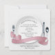 Prato branco com talheres e faixa de fita cor-de-rosa pastel para convite de jantar de aniversário de casamento