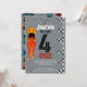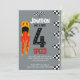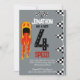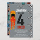 Precisa de 4 convites de festas de aniversário de 4 anos. Carros de corrida divertidos para a quarta festa de aniversário de uma criança.