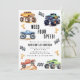 Atenção a todos os pequenos animais de festa! Preparem-se para acelerar a diversão com o nosso convite de aniversário de 4 anos Need Four Speed! (Precisamos de Velocidade) com caminhões monstro para crianças. Adornado com caminhões monstro adoráveis e vibrantes, este convite com tipografia moderna convida você a se juntar à celebração. Vamos rugir no quarto ano de vida com uma festa de aniversário épica! Esses convites podem ser impressos e compartilhados com seus amigos ou baixados digitalmente para uma experiência de planejamento de festa fácil. Não perca a chance de se divertir monstruosamente nesta festa de aniversário de quatro anos!