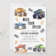 Atenção a todos os pequenos animais de festa! Preparem-se para acelerar a diversão com o nosso convite de aniversário de 4 anos Need Four Speed! Caminhões monstro para crianças. Adornado com caminhões monstro adoráveis e vibrantes, este convite com tipografia moderna convida você a se juntar à celebração. Vamos rugir no quarto ano de vida com uma festa de aniversário épica! Esses convites podem ser impressos e compartilhados com seus amigos ou baixados digitalmente para uma experiência de planejamento de festa fácil. Não perca a chance de se divertir monstruosamente nesta festa de aniversário de quatro anos!
