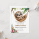 Um adorável desenho animado de preguiça se reclina feliz em uma rede tecida esticada entre palmeiras tropicais. Com óculos de sol superdimensionados e um grande sorriso, a preguiça desfruta das vibrações ensolaradas da ilha, cercada por borboletas coloridas, vegetação exuberante e flores de hibisco vibrantes. Essa imagem encantadora captura a sensação definitiva de relaxamento e alegria de verão.