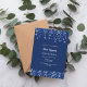 Um moderno, elegante e convite. Um fundo azul marinho decorado com confete azul. Personalize e adicione um nome e detalhes. Texto branco.