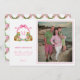 This Christmas Card has a preppy grandmillennial design featuring a Christmas crest with a leopards wearing Christmas wreaths around their necks. The bottom has blue text that says "Merry Christmas." You can personalize with a name, year and your initial. The back has a coordinating background.