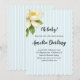 Enjoy our magnolia flower blue stripe baby shower invitation themed party.