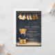 A charming preppy baby shower design featuring a sweet teddy bear dressed in a classic green plaid jacket and bow tie. Above the bear, a delicate clothesline displays tiny baby clothes and shoes, creating a nostalgic storybook nursery scene. The deep navy background and subtle tartan border add a refined, vintage-inspired touch that feels both elegant and playful. Perfect for a stylish baby shower celebration with a classic preppy aesthetic.