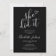 Este moderno convite de festa de formatura preto-e-branco "ela fez isso" pode ser personalizado com seus detalhes de formando e foto especial no verso. Projetado por Thisnotme©
