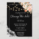 As coisas mudam. Envie aos seus convidados um lindo convite de casamento de mudança de data com esta flor de pêssego e rosa bege com decoração de renda e luzes de corda. Ótimo para casamentos rústicos e campestres.