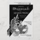 Convite Preto Branco Prata Lantejoulas Máscara de Festa