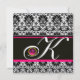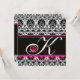Convite PRETO BRANCO ROSA DAMASCO MONOGRAMA Âmbar Metálico