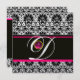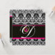 Convite PRETO BRANCO ROSA DAMASCO MONOGRAMA Ametista Gelo