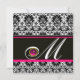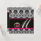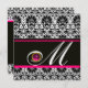 Convite PRETO BRANCO ROSA FÚCSIA DAMASCO MONOGRAMA Ametist