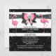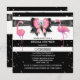 Um único laço preto e rosa em cetim sintético com uma faixa dourada na borda tem uma incrustação de diamante e é colocado contra um fundo listrado de branco e preto com bordas de brilho prateado sintético e a ilustração de dois belos pássaros flamingos rosa. Este design sofisticado e elegante é ideal para um chá de panela; festa de aniversário; um aniversário especial ou até mesmo um evento empresarial. Personalize o texto para ter certeza de que ele se adequa à sua celebração especial.